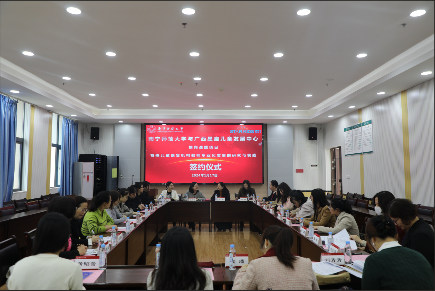 与广西星启儿童发展中心举行横向课题项目“特殊儿童康复机构教师专业化发展的研究与实践”的签约仪式,签约仪式在少妇色情