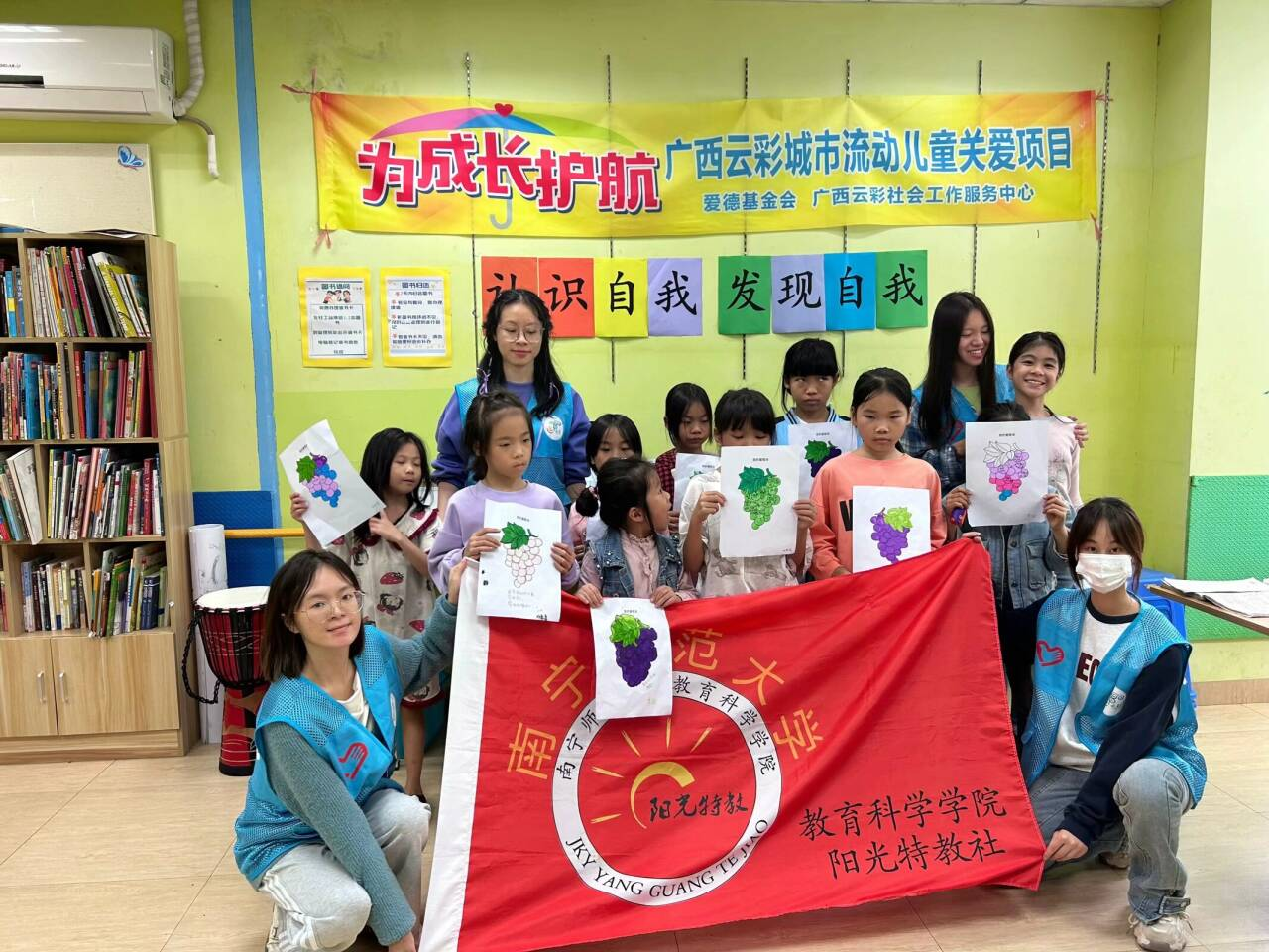 "在城市的喧嚣中,别忘记那些流动的身影,他们同样需要关爱和呵护。让我们共同努力,让每一个城市流动儿童都能拥有一个温暖的家园。"阳光特教社秉持心怀耐心、用爱点亮生活的宗旨,不定期走进广西云彩社会工作服务中心为城市流动儿童开展一系列主题活动。这一系列活动不仅给孩子们带来了欢乐和知识,也让他们感受到了温暖和美好。在未来,阳光特教社希望这一系列的志愿活动能够持续进行,让更多的孩子受益,让爱在每个孩子心 中生根发芽,让他们在阳光雨露的滋润下茁壮成长。