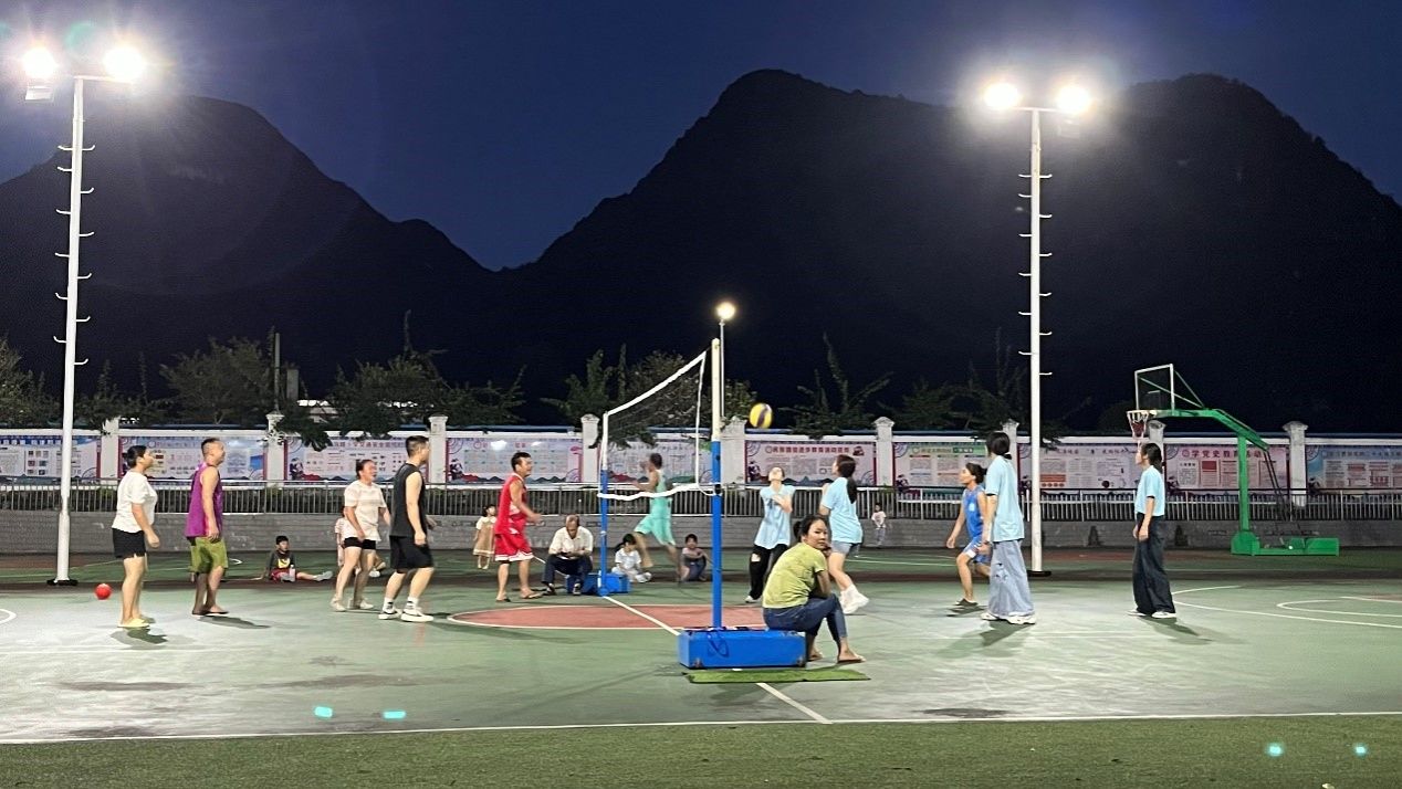 傍晚时分,随着夕阳的余晖洒满操场,一场由三下乡队员们与村民共同参与的排球友谊赛正式拉开帷幕。赛场上,双方队员精神抖擞,斗志昂扬。发球、接球、扣球……每一个动作都凝聚着队员们的汗水与智慧。场边,观众们的加油声、欢呼声此起彼伏,为比赛增添了浓厚的氛围。