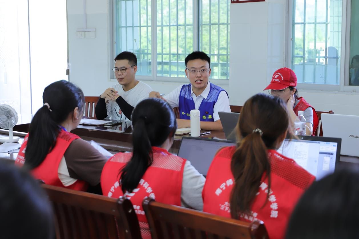 暑期“三下乡”社会实践活动,2024年7月8日马蹄村驻村第一书记陈一鑫、红渡镇马蹄小学蓝腾山校长在学校会议室与实践队员们进行了深刻的交流。