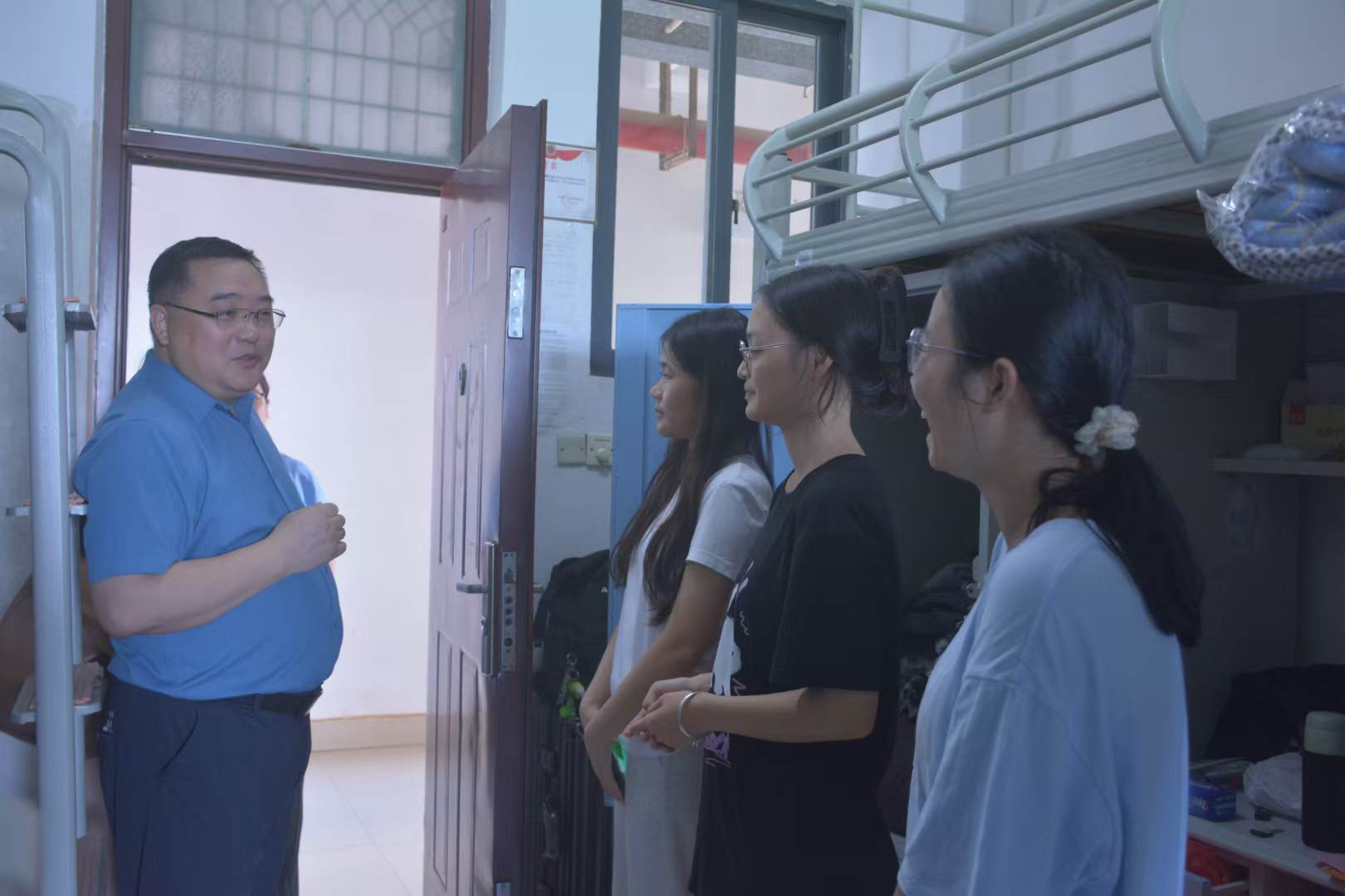 迎来了2024级新生。为深入了解新生住宿及生活情况,8月30日傍晚,我院的领导班子、新生班主任及全体学工老师分别走访了各班级新生宿舍,向新生表达了诚挚的慰问。
