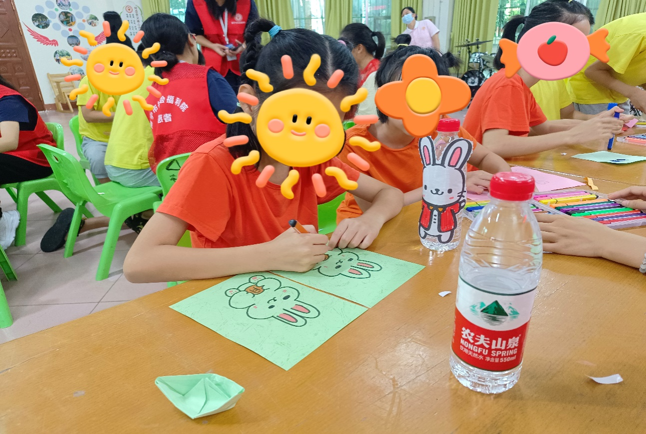 的志愿者们带领福利院的儿童们依次进行了“中秋衍纸DIY,海底捞月,传递团圆,翻滚吧,兔子”这四个有趣的活动。志愿者们充满爱心,耐心地与福利院儿童开展活动,传递温情,陪伴他们度过一段快乐的时光。最后,本次志愿活动在全体志愿者和所有工作人员的共同努力下,在一片欢声笑语中圆满结束。