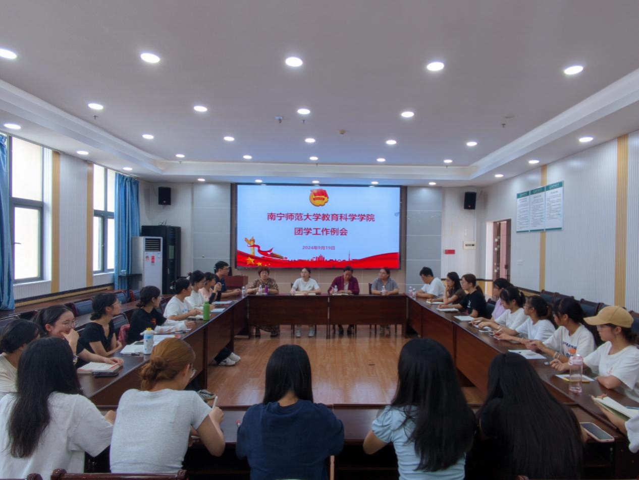 团学工作例会于9月19日下午在五合校区理综1003教室如期举行。出席本次会议的有学院党委副书记谢珊、团委书记蒋欢和辅导员郭恒、梁精泉、周芳、巫福星老师以及分团委学生会干部。