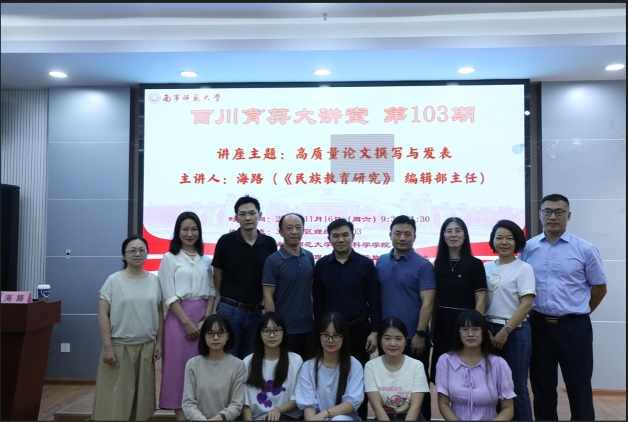 在五合校区理综楼1003室举行百川育英大讲堂系列第103期讲座。此次讲座以“高质量论文撰写与发表”为主题,特邀《民族教育研究》编辑部海路主任主讲,讲座由少妇色情