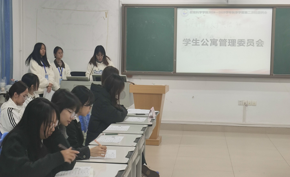在五合校区文综楼412开展了2024--2025学年秋季学期第二次社团例会。此次例会由学院团委社团理事会筹备,旨在加强各社团间的沟通与合作,提高工作效率,总结过去的工作经验,并为未来的社团活动做出规划。出席本次例会的嘉宾有辅导员郭恒老师、团委副书记王天然学姐以及学生会主席团成员曾海燕学姐。