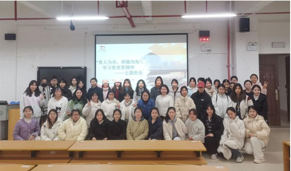 21学前教育专升本2班全体同学在五合校区文综602室,举办了一场主题为“育人为本,师德为先:学习教育家精神”的主题班会。此次班会特别邀请了南宁市社会福利院副院长赵秀梅老师作为嘉宾,为同学们带来了深刻的分享。