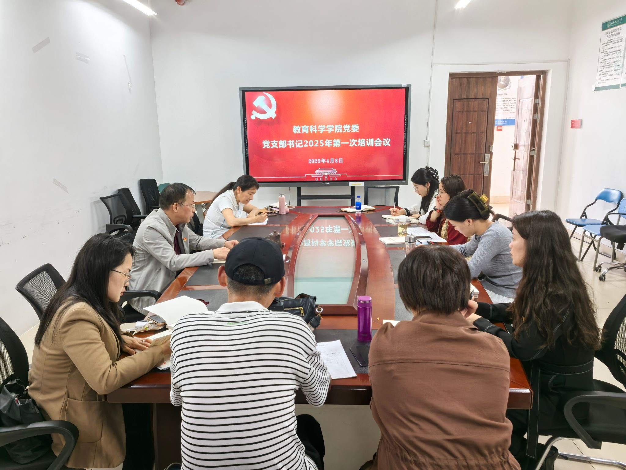 党委在五合校区理楼1004-1会议室召开党支部书记2025年第一次培训会议。会议由学院党委书记余朝文主持,全体党支部书记参加会议。
