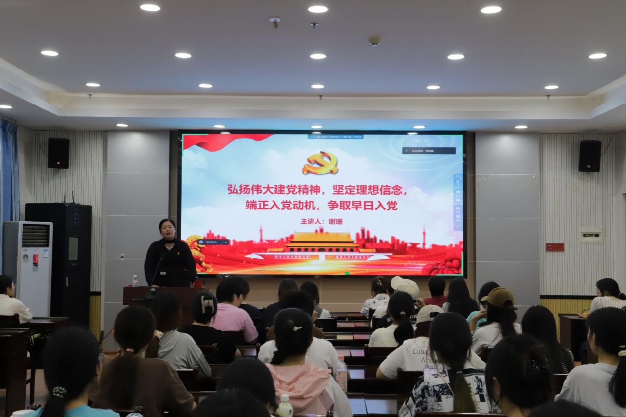 在理综1003教室开展入党积极分子培训第二讲。本次培训由党委副书记谢珊担任主讲人,培训主题为“弘扬伟大建党精神,坚定理想信念,端正入党动机,争取早日入党”。
