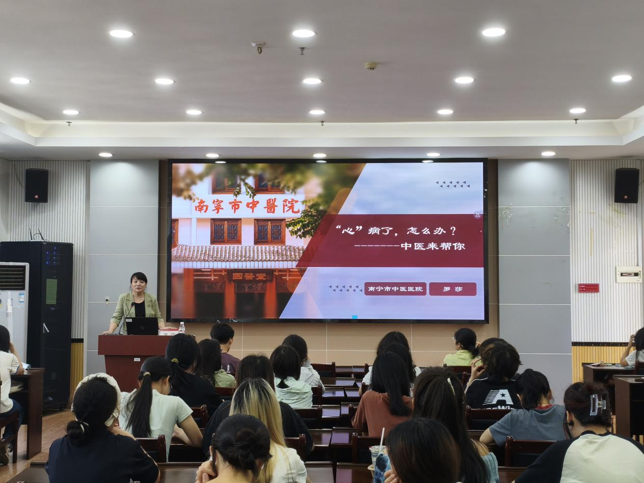 在理综1003教室开展了中医防治情志病讲座。本次活动由资深中医专家、中医内科学硕士罗莎主任进行深入浅出的讲解,通过“理论解析+视频示范+沉浸式体验”三维模式,为大家揭开“心病”的中医防治密码。