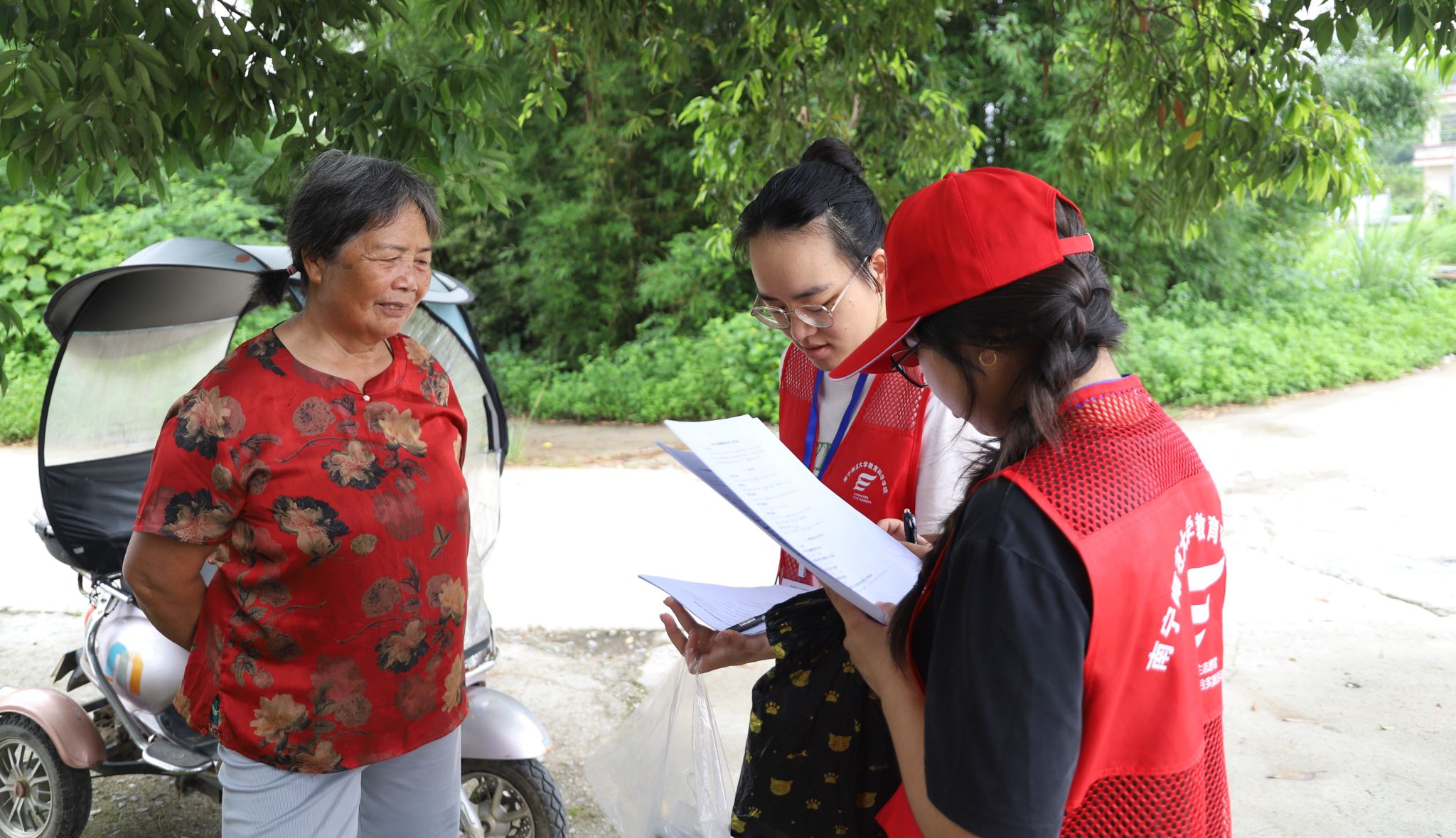 午后烈日当空,各组成员的热情丝毫未减。支教组成员收集好明日课程材料后,继续走村串户宣传暑假夏令营;调研组成员则深入村落,围绕养蚕业发展、乡村振兴现状、村民对第一书记工作及心理健康教育的看法展开实地走访。实践队员的每一步前行都承载着责任,每一次交流都凝聚着对乡村的关切。“情暖童心护成长”夏令营里的草木拓印不只是把叶脉留存在纸面,更把乡土中国的纹理拓进了青年与儿童的共同记忆;一首首童声合唱,也不只在操场上回荡,而是在孩子们心里埋下“我将来也要建设家乡”的种子。教育实践的真正价值,不在于我们带来了什么,而在于我们能否让这片土地相信——它的故事值得被世界看见,它的孩子值得被更好的未来拥抱。