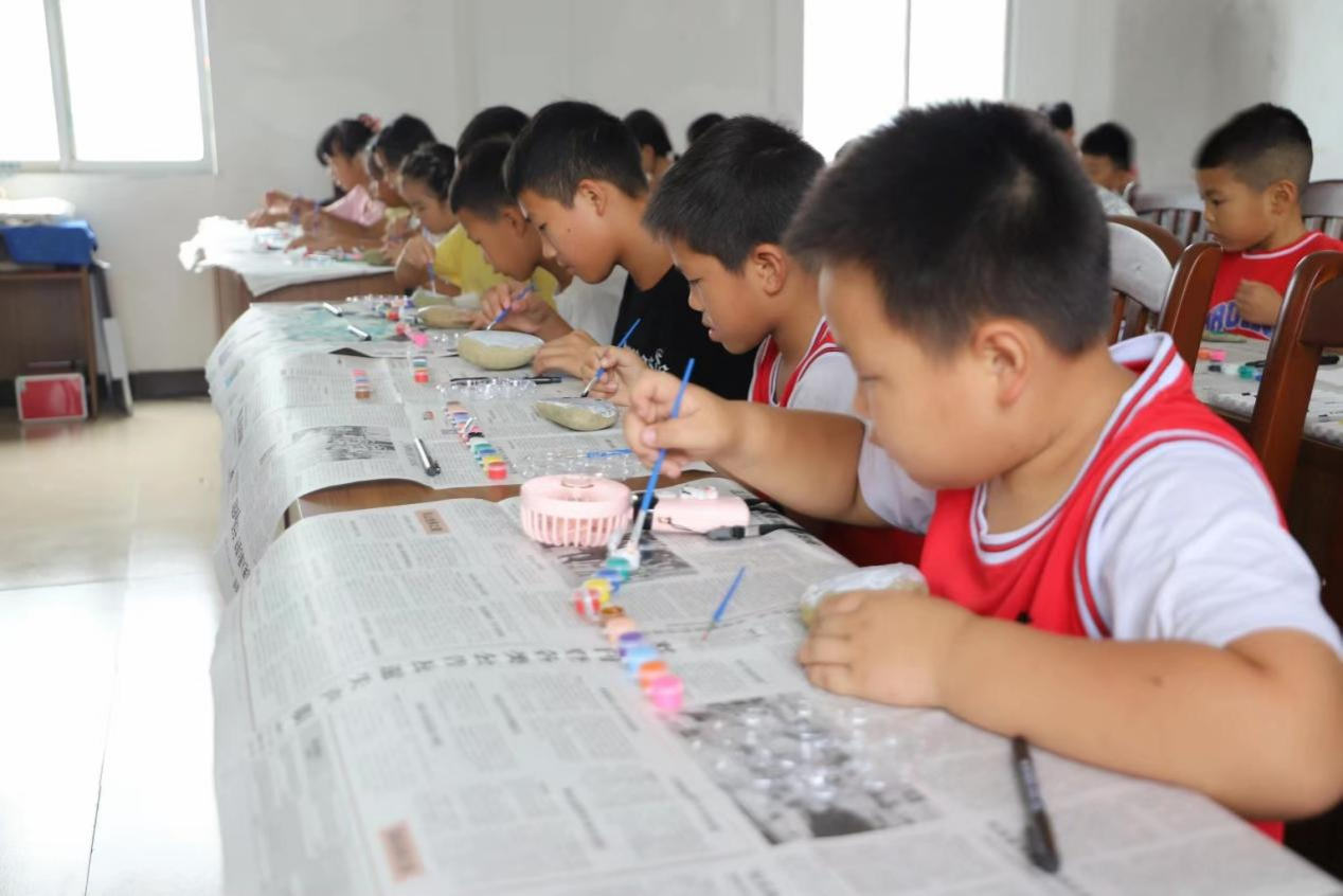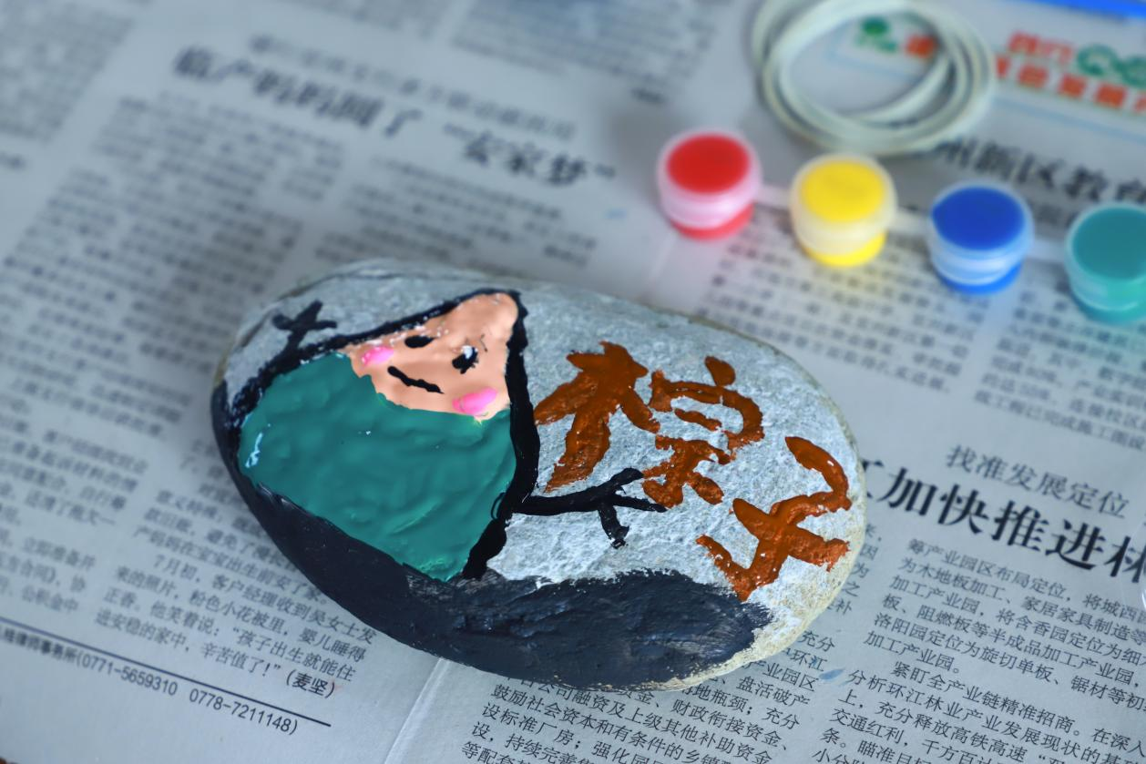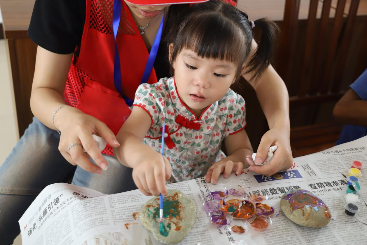 “情暖童心护成长,爱润乡土助振兴”社会实践团的志愿者化身创意导师,带领天宝村的学生们开启石头绘画课。大家以石为纸、挥笔创作,缤纷色彩与灵动线条,让普通石块蜕变为童趣满满的艺术品。