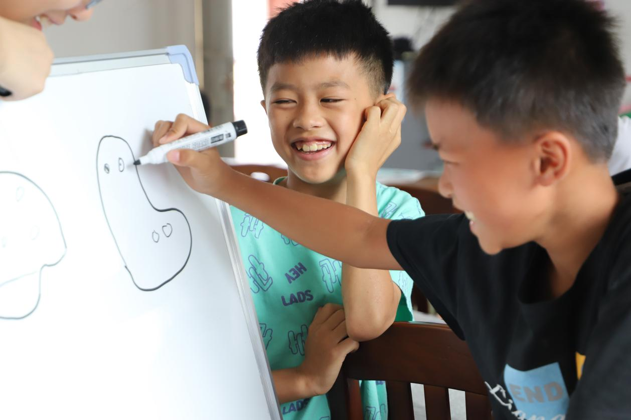 绘画活动开始前,指导老师先支起小白板,为同学们细细拆解石头绘画的基础技法:从如何巧借鹅卵石的天然弧度铺陈构图,让图案与石形浑然相融、相映成趣;到如何调配色彩,让画面在和谐统一中透着灵动生气,都讲得浅显易懂。讲解毕,老师邀请大家在白板上落笔试画,在预设的简单轮廓里,有人添上细碎的星点,有人勾出飘逸的弧线,有人缀以俏皮的几何图形……短短几笔,笔触或轻或重,构想各有巧思,已然显露出蓬勃的创作个性。