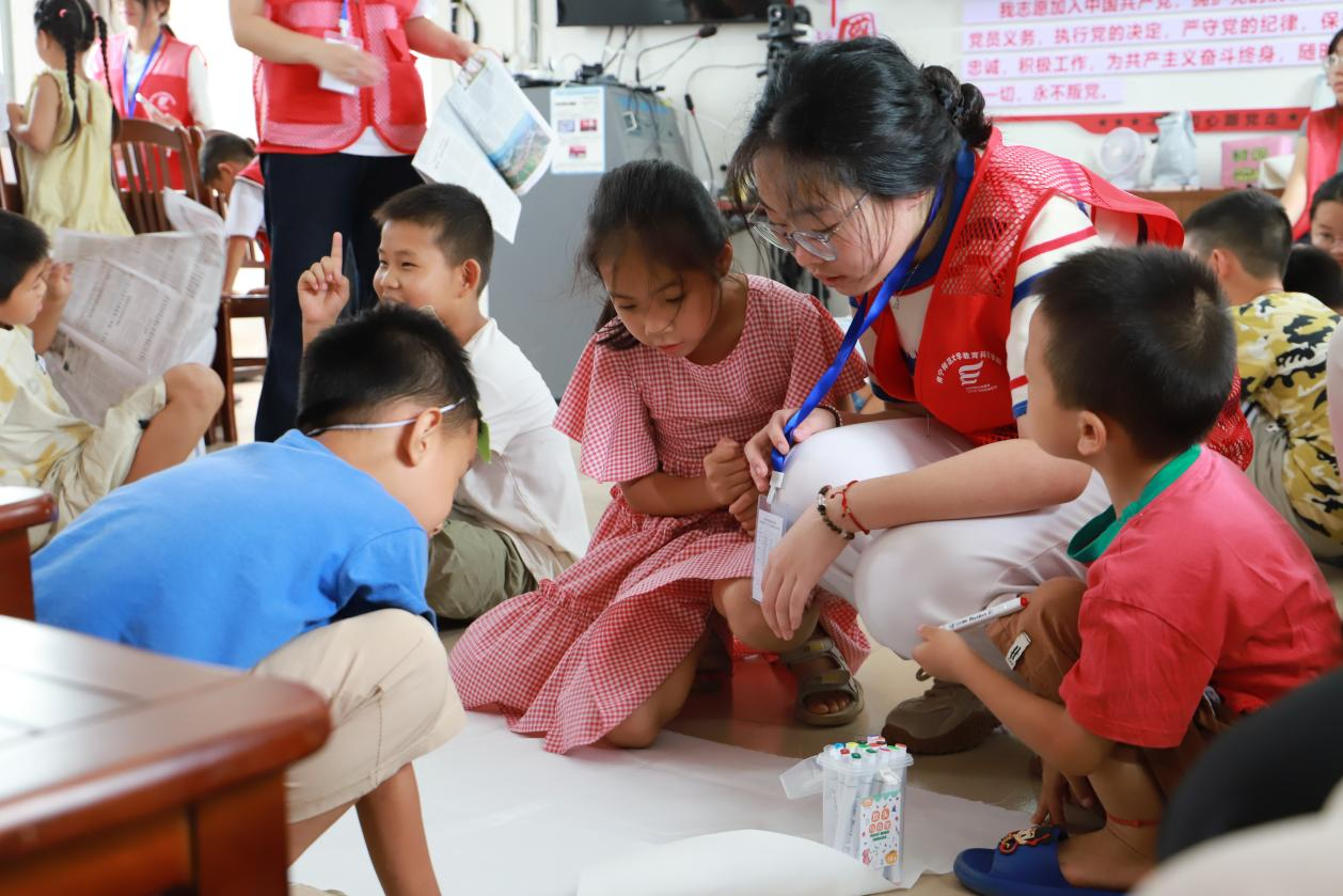 “情暖童心护成长,爱润乡土助振兴”社会实践团在天宝村开展暑期夏令营活动,通过手工、鉴赏、团辅三大课程提升学生美学素养、呵护心理健康,并在物华村驻村第一书记黎敏带领下前往物华村,围绕青少年心理健康与乡土文化保护开展调研。