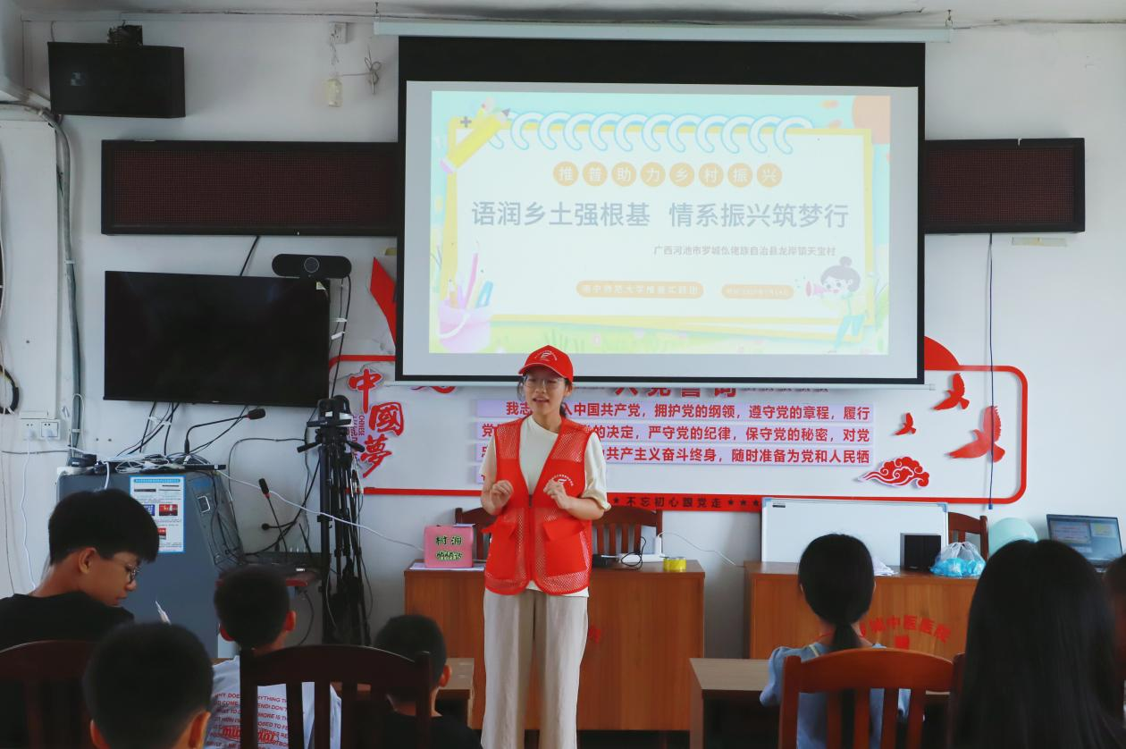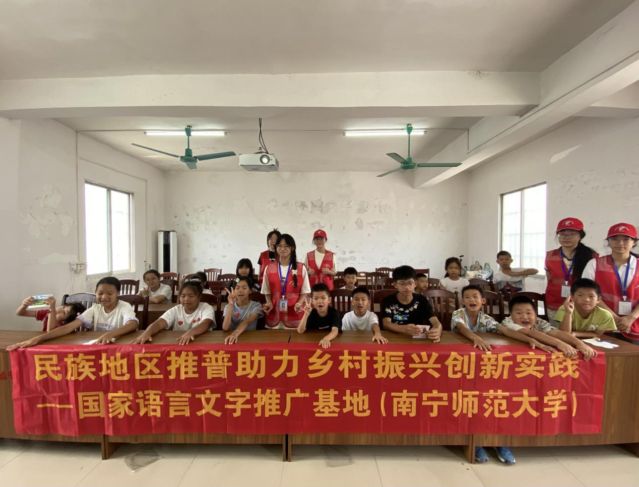 暑期实践团在河池市罗城仫佬族自治县龙岸镇天宝村开展了民族地区推普助力乡村振兴实践活动,此次实践活动内容丰富多样,涵盖了村民普通话情况调研、推普支教课程、多元化宣传推普等多个方面。