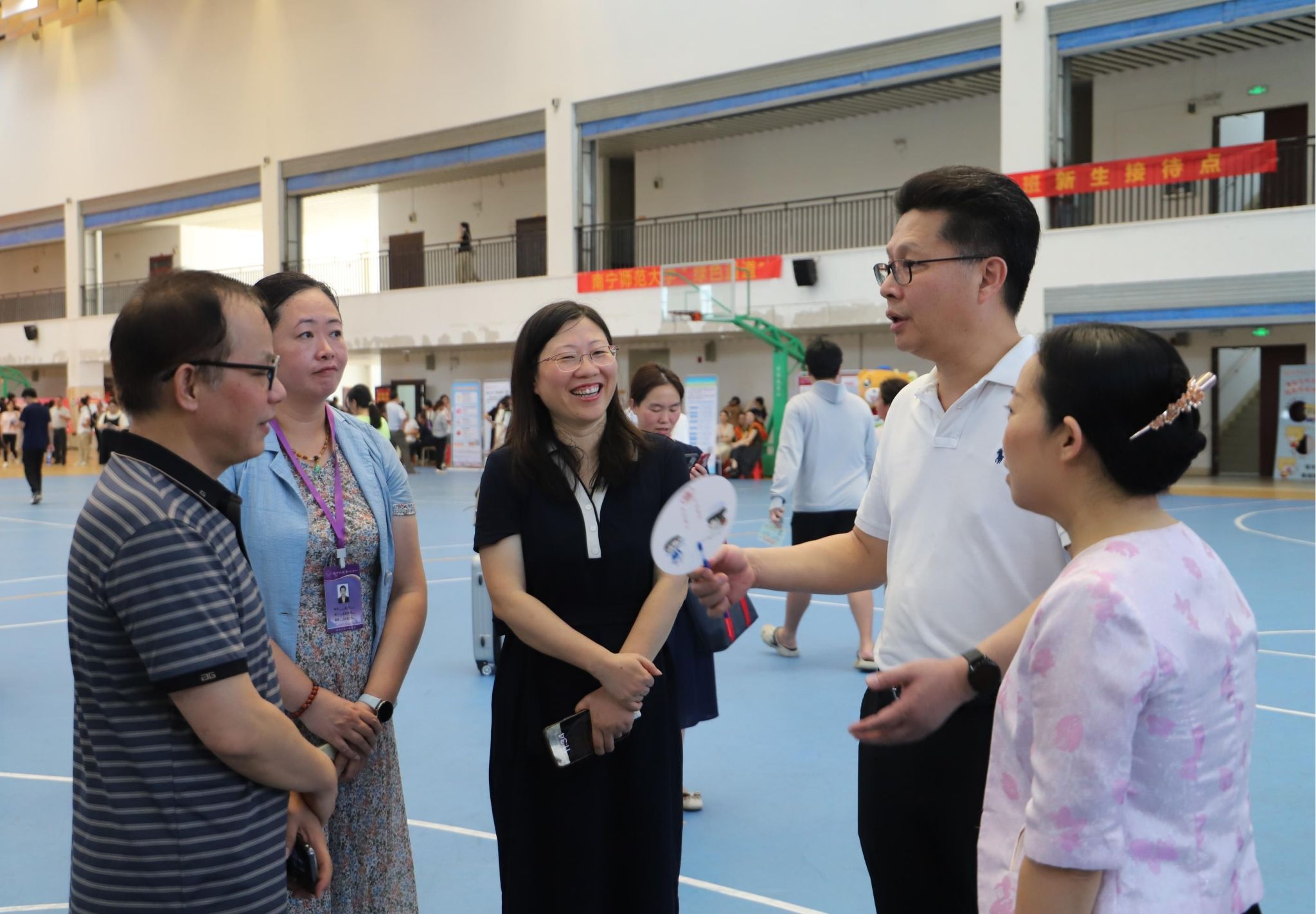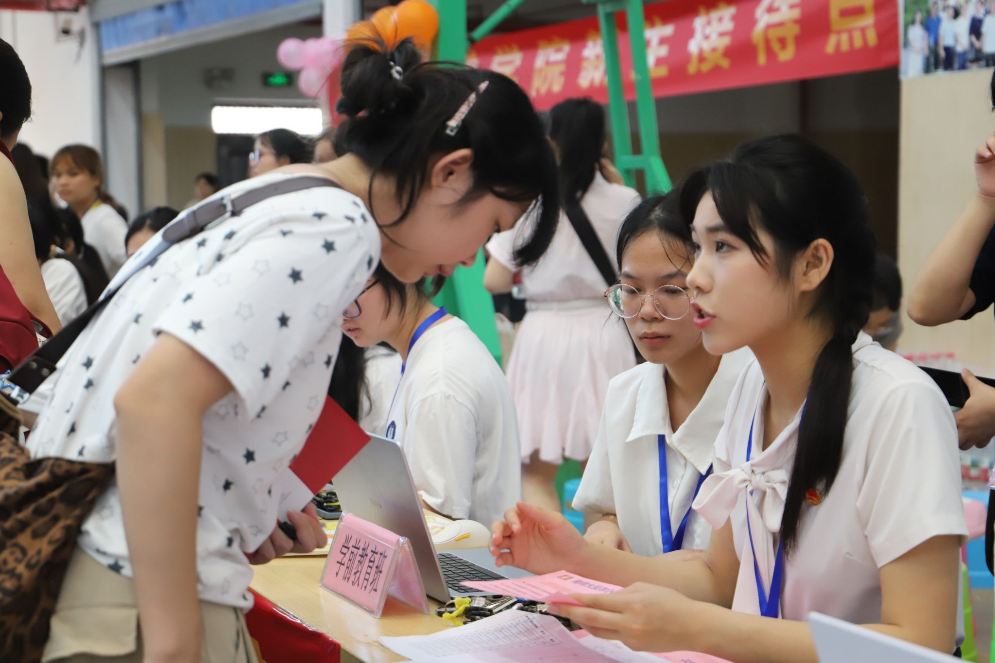 领导班子、学工办老师以及新生班主任坚守一线,多次巡查各接待点,实时协调人力调配。同时,针对新生初入校园的陌生感,志愿者们身着统一服装化身“校园向导”,主动上前帮助,耐心解答,用真诚的笑容与贴心的服务,让家长和新生感受到细致入微的关怀。