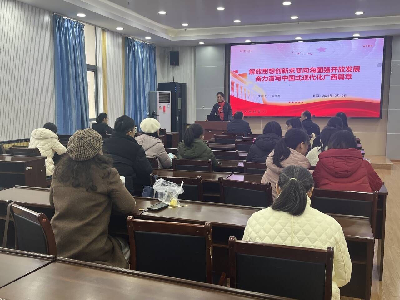 2023年12月19日,少妇色情 教育学教工支部在五合校区理科综合楼1003会议室举行学习宣传贯彻习近平总书记视察广西重要讲话精神教育培训活动,全体教育学系教师党员参会。培训活动由教育学系支部书记熊孝梅教授主持。