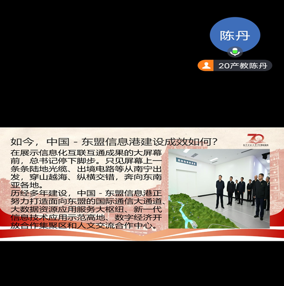 会议伊始,陈丹同志组织全体党员观看习近平总书记视察广西的相关视频。随后,会上全体成员分别从“开放的前沿”、“共同的家园”、“希望的田野”三个板块深入细致地学习和感受习近平总书记视察期间“做活广西高质量发展这盘棋,棋眼就在扩大开放上”、“中华民族就是56个民族融合组成的民族共同体”、“祝愿乡亲们的生活像甘蔗一样甜蜜”等一系列重要讲话和亲切祝愿。至此,大家表示收获良多,会议圆满结束。