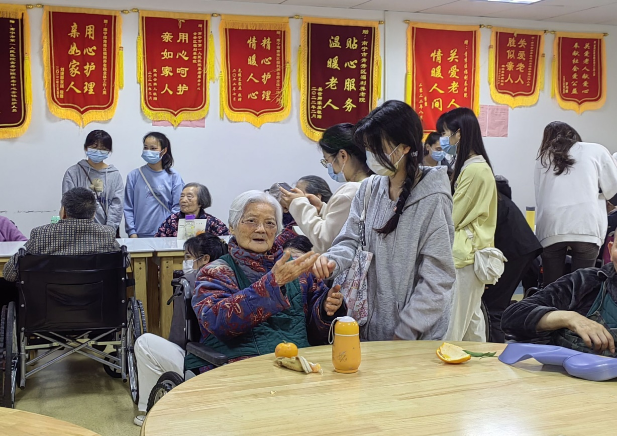 青年志愿者协会前往南宁市第一人民医院青秀分院养老院开展“牵手夕阳红,温暖老人心”主题活动。本次活动旨在大力弘扬“奉献、友爱、互助”的志愿者精神,同时倡导“学习雷锋、奉献他人、提升自己”的志愿服务精神,并鼓励更多人在服务社会、助人为乐、爱岗敬业中提升人生境界,展示青年大学生的时代风貌,推动了青年志愿者行动的健康发展,吸引了众多志愿者的参与。