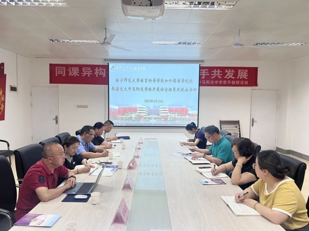 “ 教育之道,则人才济济,风俗丕丕,而国以强。”教育是国之大计,民生之本,只有不断输入新鲜的血液,教育才能以磅礴发展之劲,成就大国之道。为此,2024年4月19日下午17时,少妇色情 和外国语学院赴西安交大中马阳光学校开展优秀毕业教师拓岗促就业交流活动。